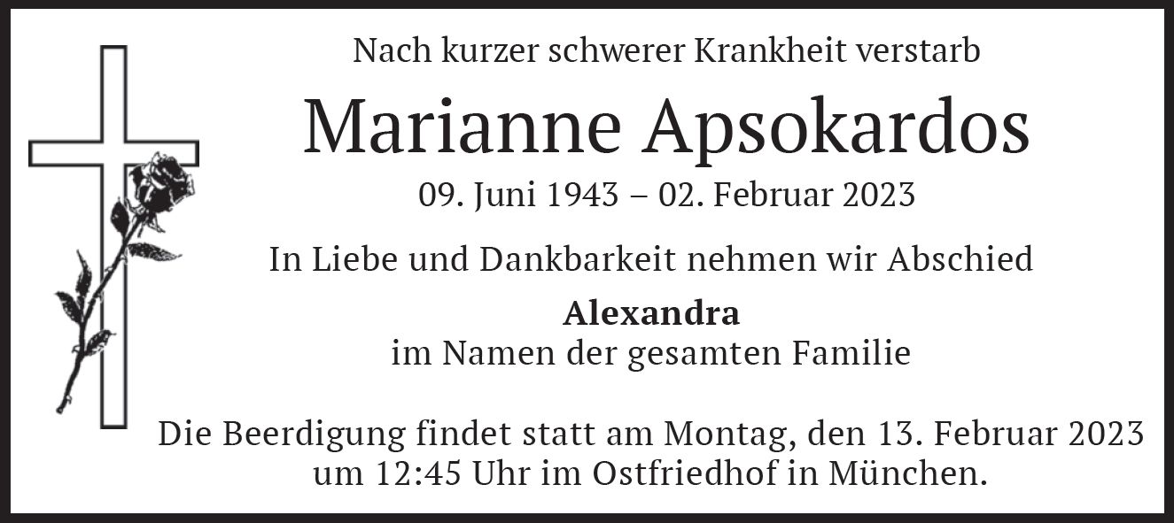 Beerdigung am Montag, den 13. Februar 2023, um 12:45 Uhr im Ostfriedhof München