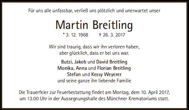 Wir trauern um Herrn Martin Breitling * 03.12.1968 † 26.03.2017 |