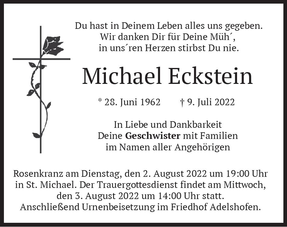 Wir trauern um Herrn Michael Eckstein * 28.06.1962 † 09.07.2022 |