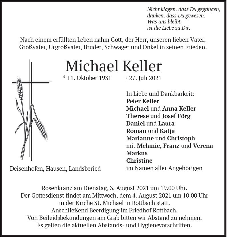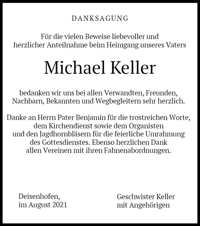 Wir trauern um Herrn Michael Keller Landwirt * 11.10.1931 † 27.07.2021 |