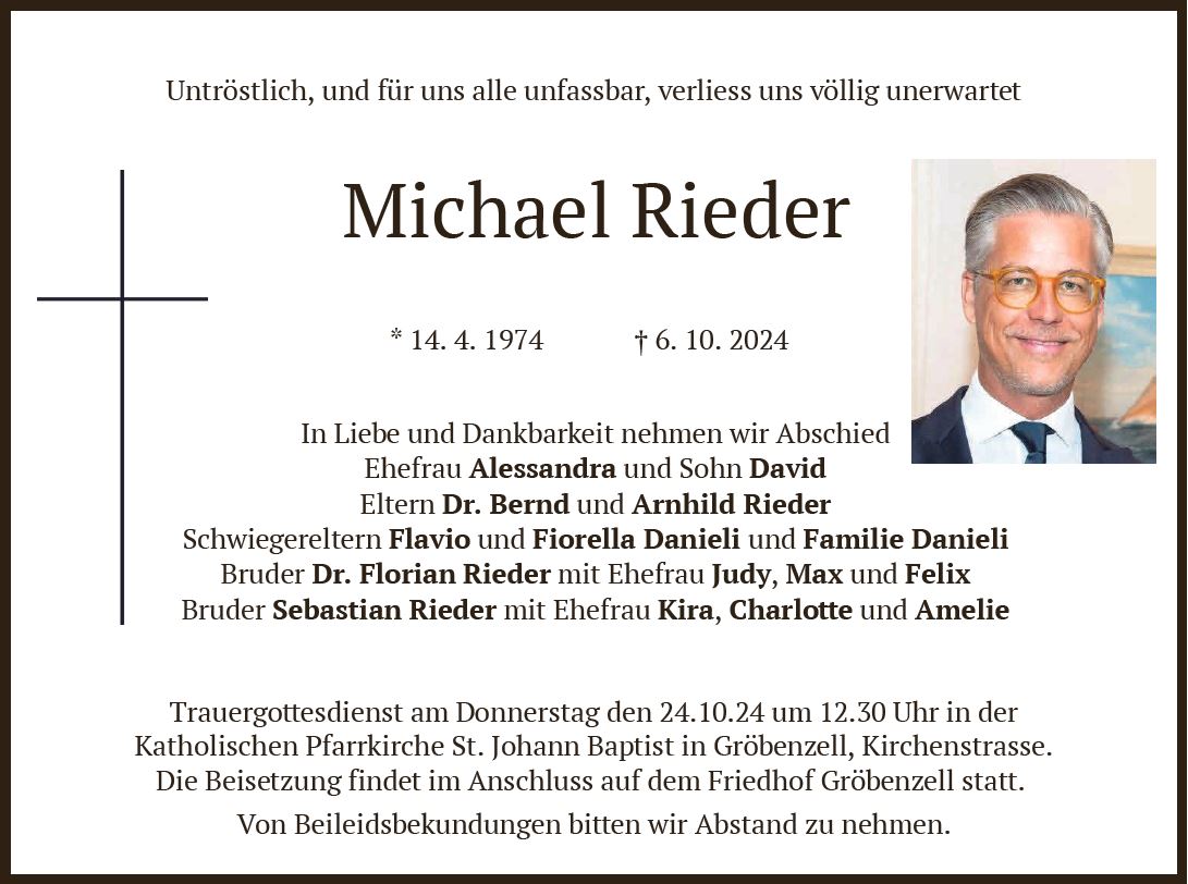 Wir trauern um Herrn Michael Rieder * 14.04.1974 † 06.10.2024 |