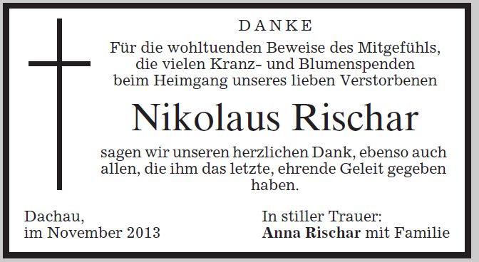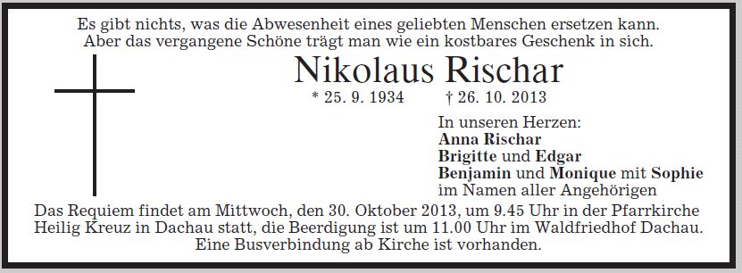 Wir trauern um Herrn Nikolaus Rischar Vertriebsleiter * 25.09.1934 † 26.10.2013 |
