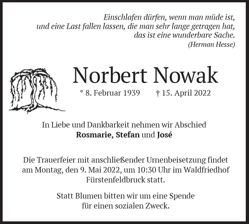Wir trauern um Herrn Norbert Nowak * 08.02.1939 † 15.04.2022 |