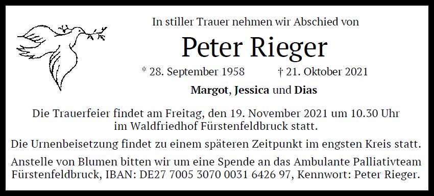 Wir trauern um Herrn Peter Rieger * 28.09.1958 † 21.10.2021 |