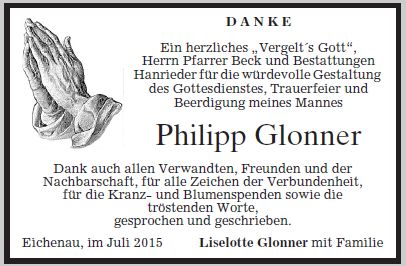 Wir trauern um Herrn Philipp Glonner Dipl. Ing. Elektrotechnik * 18.09.1927 † 14.07.2015 |