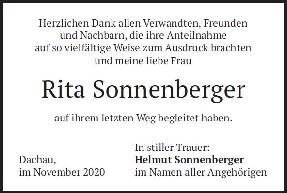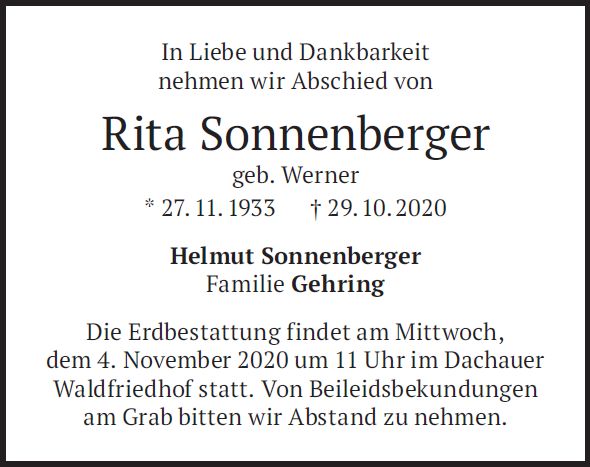 Beerdigung am Mittwoch, dem 4. November 2020, um 11:00 Uhr im Dachauer Waldfriedhof.
