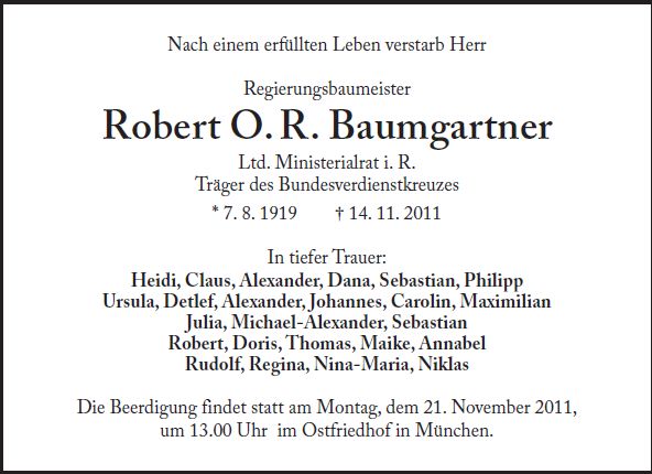 Die Beerdigung am Montag, dem 21. November 2011 um 13:00 Uhr im Münchener Ostfriedhof