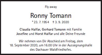 Die Trauerfeier mit anschließender Urnenbeisetzung ist am Freitag, dem 18. September 2020, um 16:00 Uhr im Dachauer Waldfriedhof |