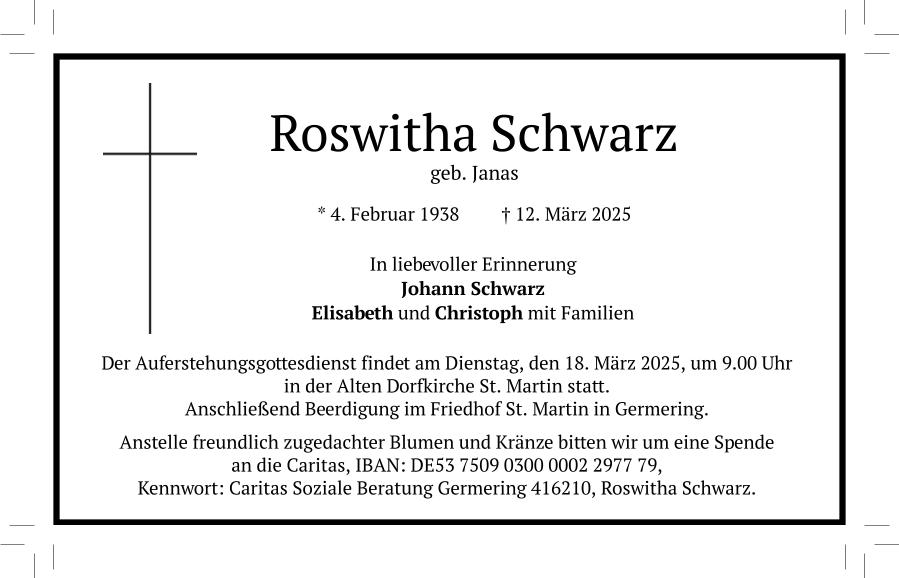 in der Alten Dorfkirche St. Martin statt. Anschließend Beerdigung im Friedhof St. Martin in Germering.