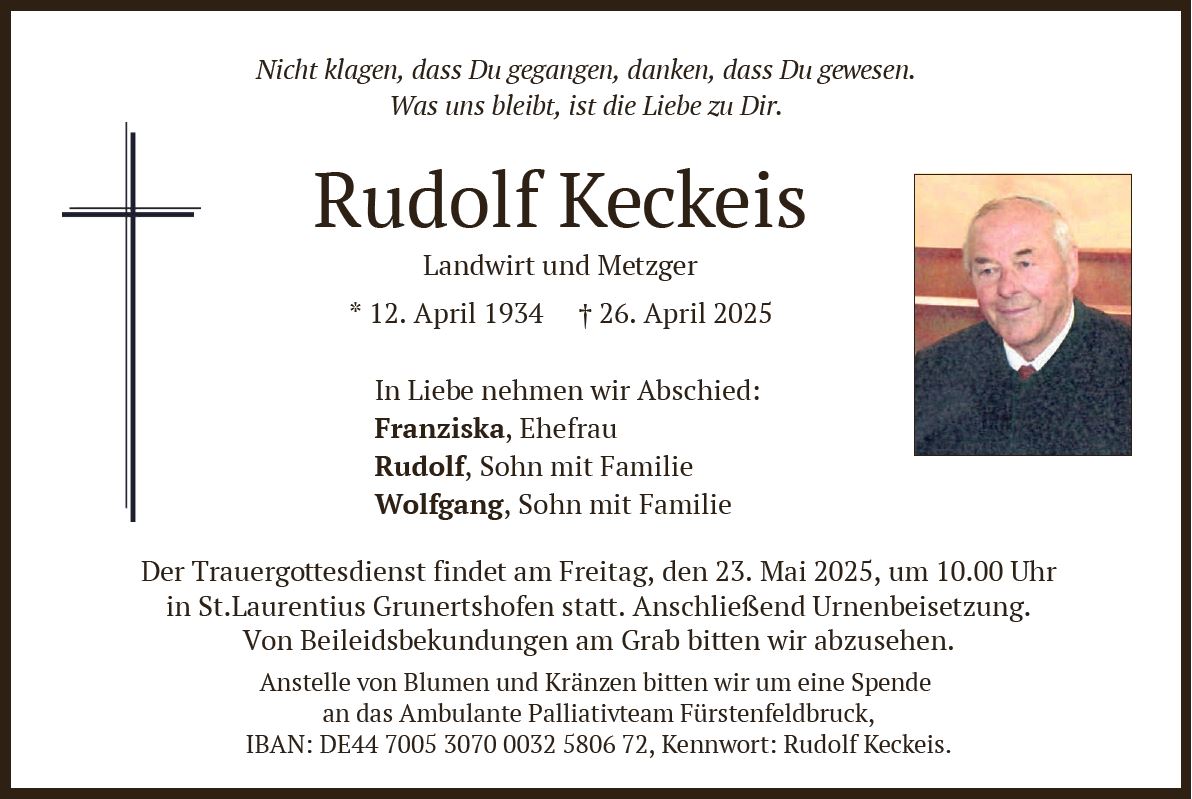 Wir trauern um Herrn Rudolf Keckeis Landwirt und Metzger * 12.04.1934 † 26.04.2025 |