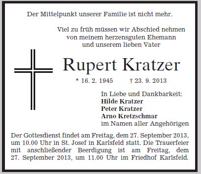 Wir trauern um Herrn Rupert Kratzer Beamter * 16.02.1945 † 23.09.2013 |