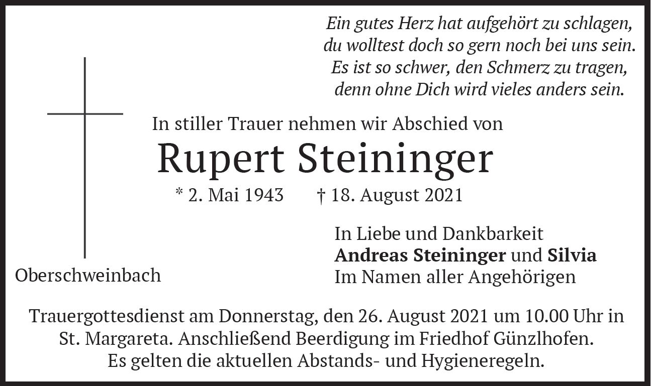 Trauergottesdienst am Donnerstag, den 26.August 2021 um 10.00 Uhr in St.Margareta. Anschließend Beerdigung im Friedhof Günzlhofen. Es gelten die aktuellen Abstands- und Hygienevorschriften.