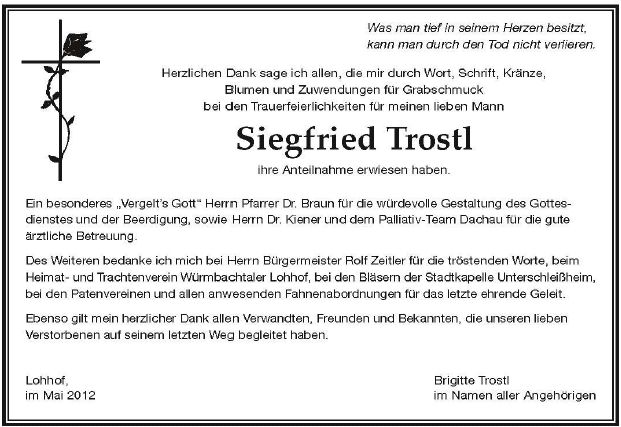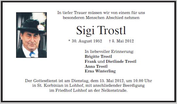 Wir trauern um Herrn Siegfried Trostl Malermeister * 30.08.1952 † 08.05.2012 |