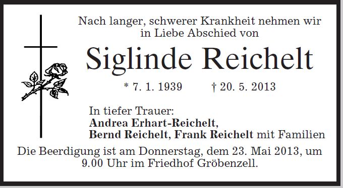 Die Beerdigung ist am Donnerstag, dem 23. Mai 2013, um 9 Uhr im Friedhof Gröbenzell.