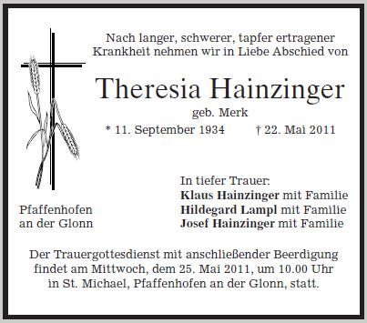 Frau Theresia Hainzinger geb. Merk