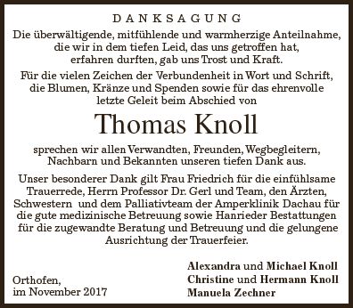 Die Trauerfeier mit anschließender Urnenbeisetzung ist am Freitag, dem 20. Oktober 2017, um 14 Uhr im Friedhof Orthofen. |