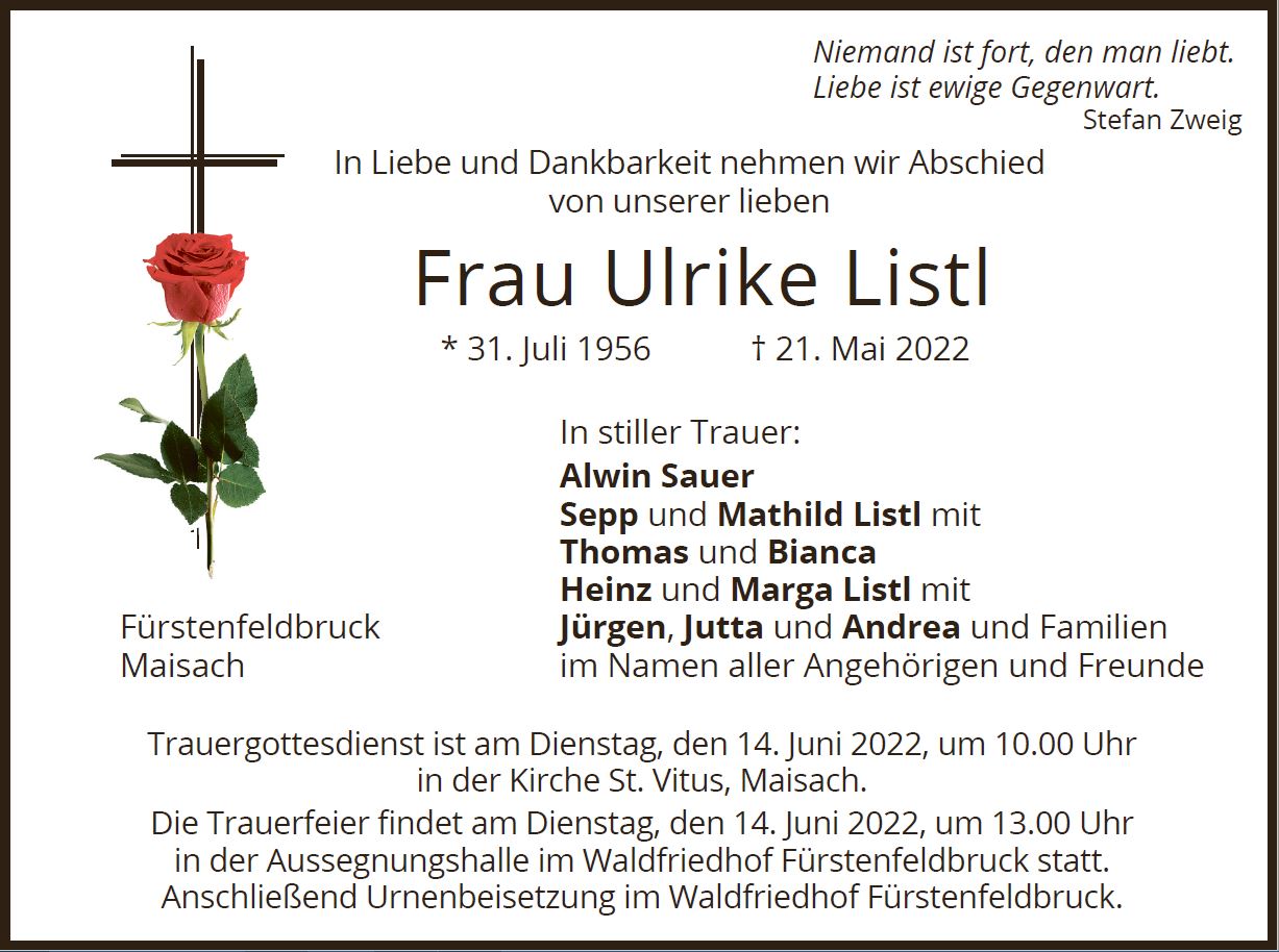 Wir trauern um Frau Ulrike Listl Kirchenmusikerin/Klavierlehrerin * 31.07.1956 † 21.05.2022 |