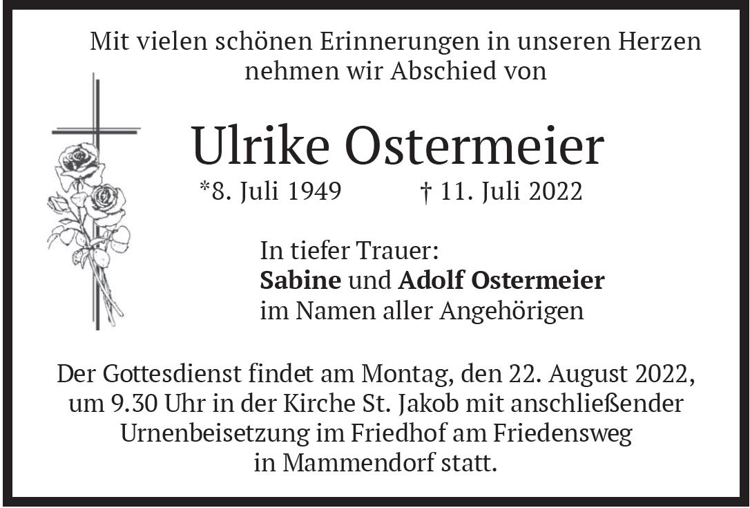 Gottesdienst am Montag, dem 22. August 2022, um 09:30 Uhr in der Parrkirche St. Jakob Mammendorf Anschließend die Urnenbeisetzung im Friedhof Am Friedensweg.