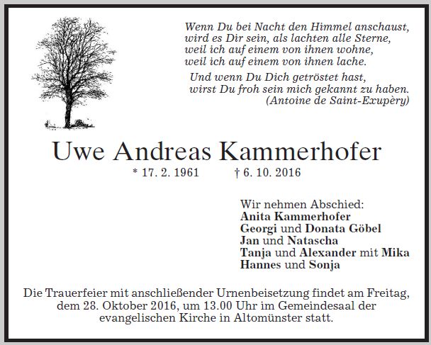 Gottesdienst am Freitag, dem 28. Oktober 2016, um 13:00 Uhr im ev.-luth.Gemeindesaal Altomünster anschließend Urnenbeisetzung im Friedhof Altomünster