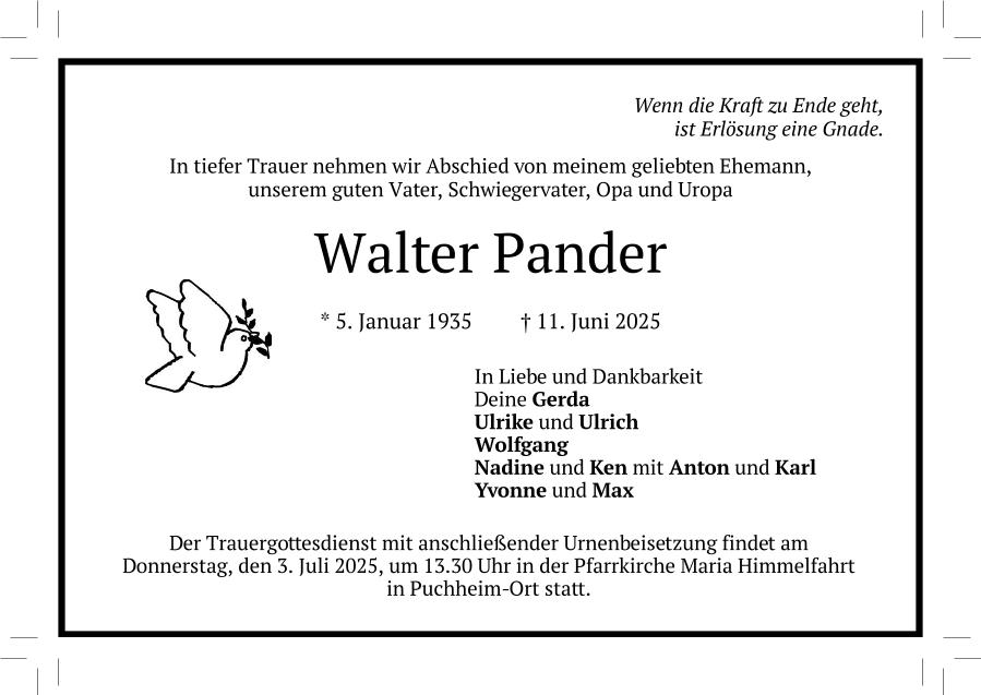Wir trauern um Herrn Walter Pander * 05.01.1935 † 11.06.2025 |