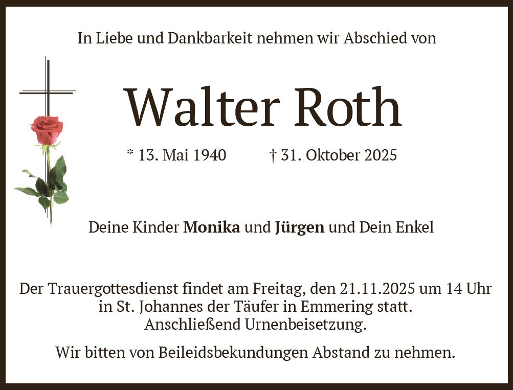 Wir trauern um Herrn Walter Roth * 13.05.1940 † 31.10.2025 |