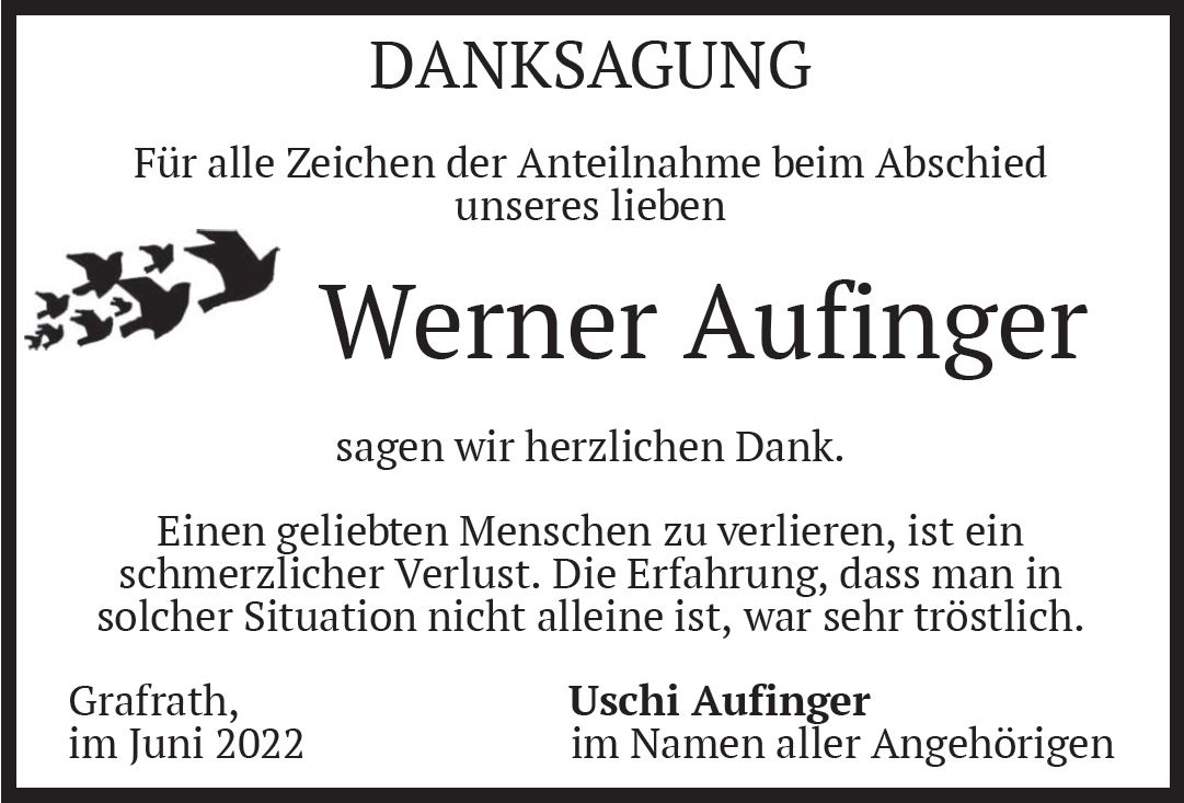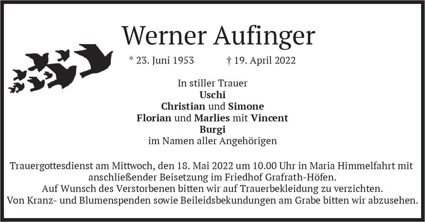 Wir trauern um Herrn Werner Aufinger * 23.06.1953 † 19.04.2022 |