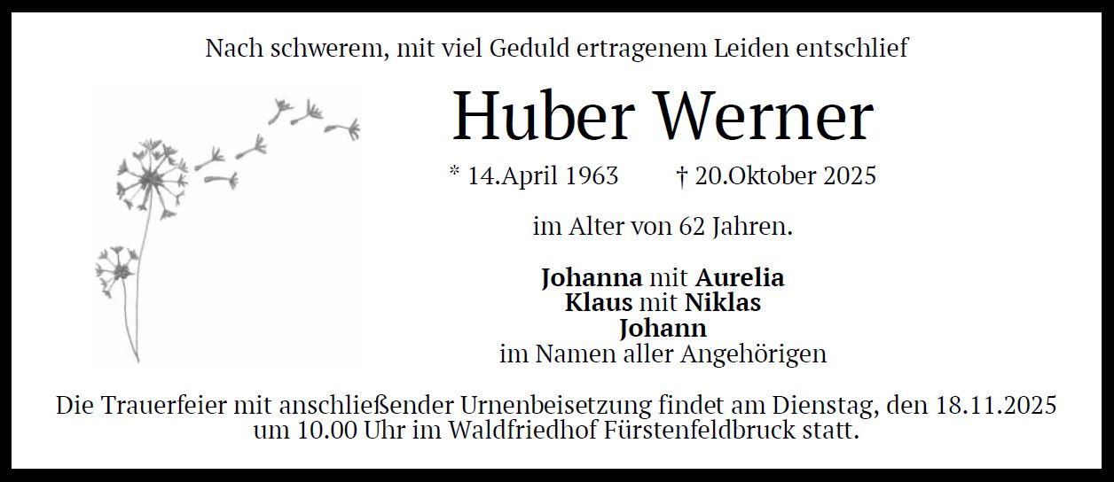 Wir trauern um Herrn Werner Huber * 14.04.1963 † 20.10.2025 |