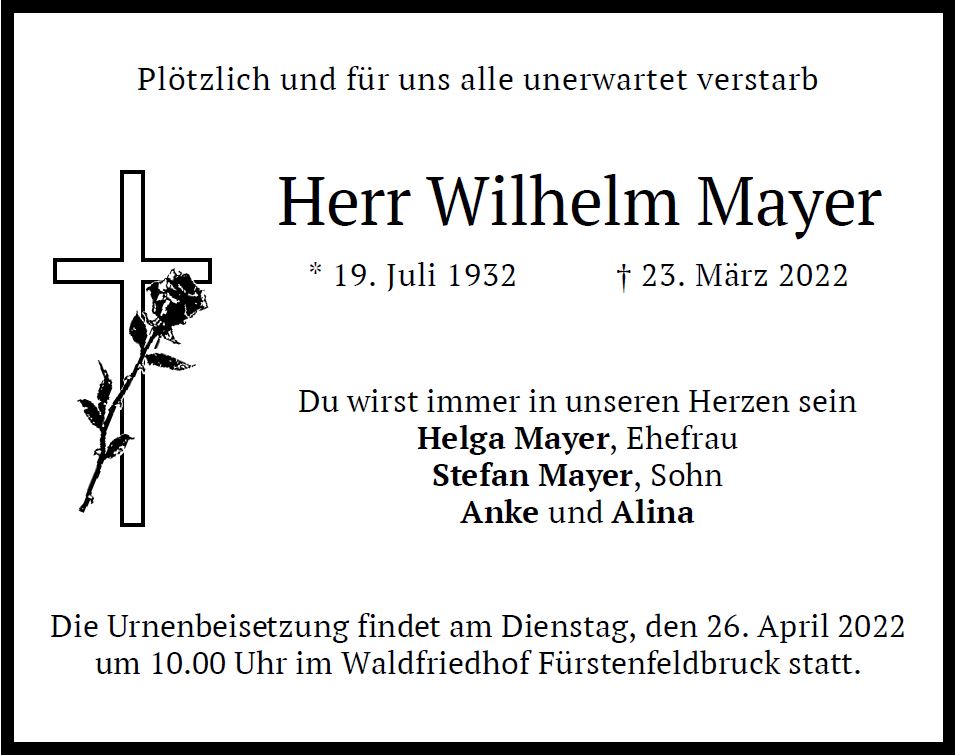 Die Urnenbeisetzung findet am Dienstag, den 26. April 2022 um 10.00 Uhr im Waldfriedhof Fürstenfeldbruck statt.