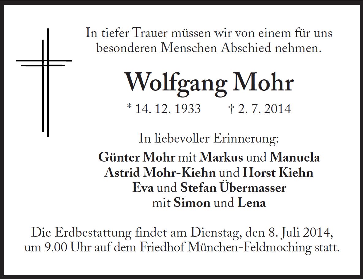 Beerdigung am Dienstag, dem 8. Juli 2014, um 09:00 Uhr im Friedhof München Feldmoching