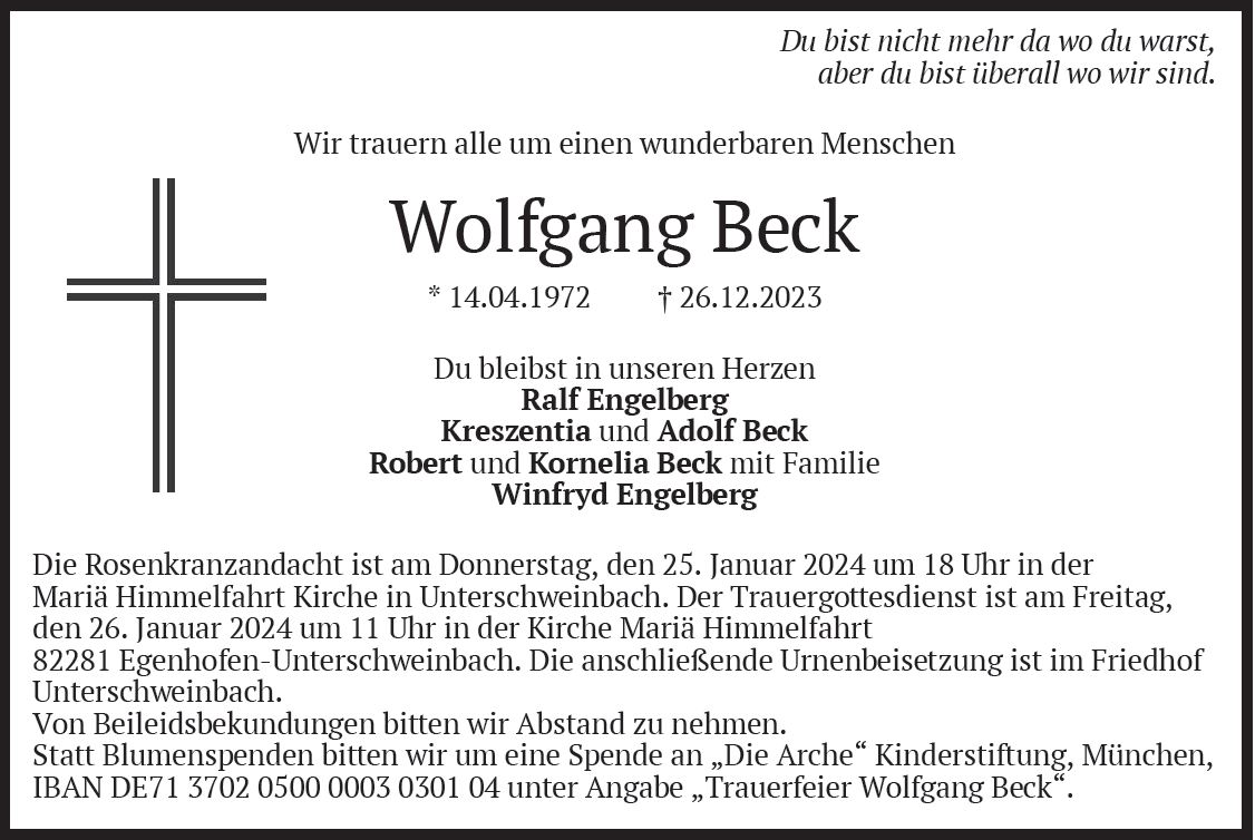 Gottesdienst am Freitag, den 26. Januar 2024, um 11:00 Uhr in der Kirche Maria Himmelfahrt Unterschweinbach Die Urnenbeisetzung am Freitag, den 26. Januar 2024, um 11:45 Uhr im Friedhof Unterschweinbach